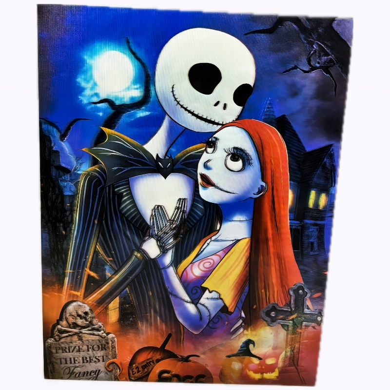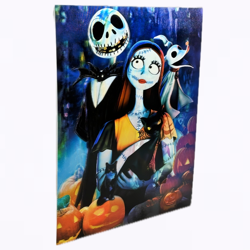 Lámina Poster 3D Lenticular Jack Skellington y Sally, de la famosa película Pesadillas antes de Navidad.