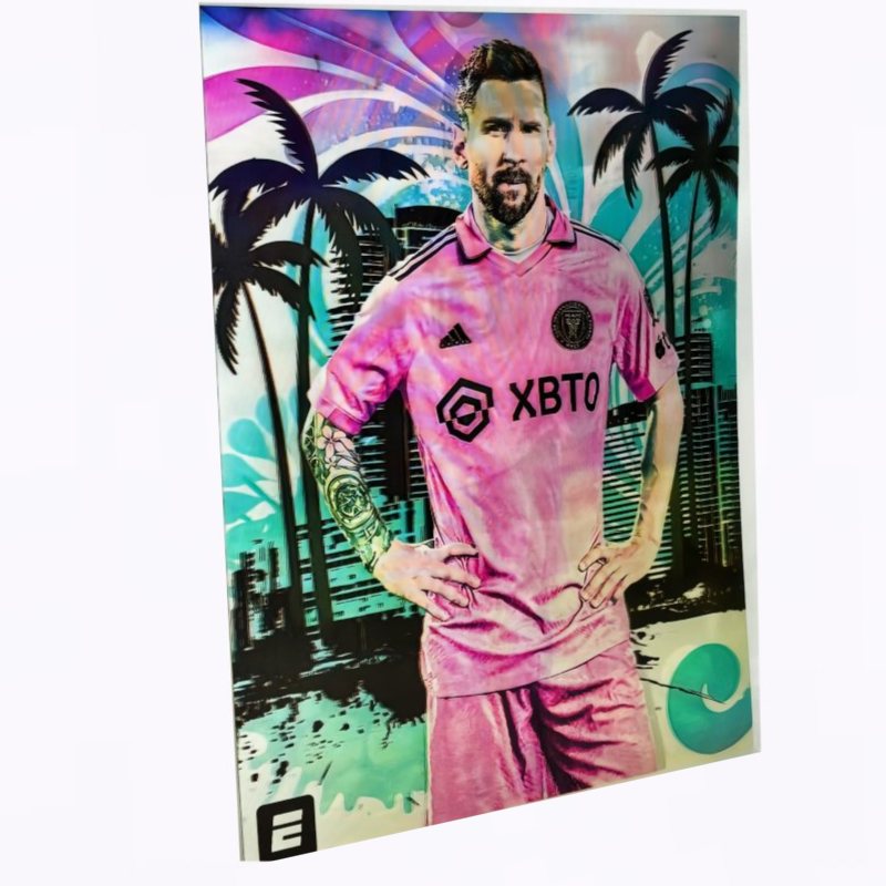 Póster 3D Lenticular de Lionel Messi en el equipo de futbol Inter de Miami.