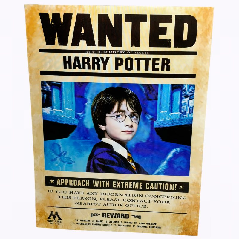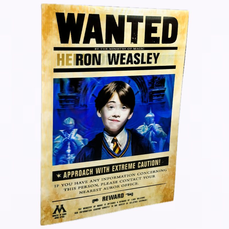 Lámina Póster 3D Lenticular Wanted de Ron, Hermione y Harry Potter.